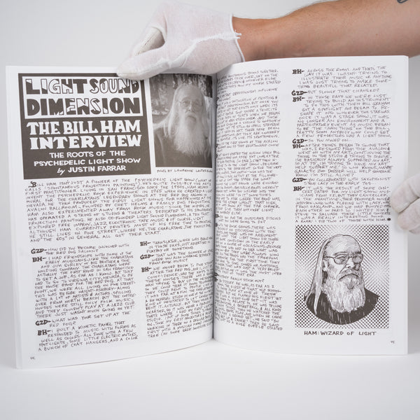 Issue #8 of Galactic Zoo Dossier, a hand drawn psychedelic magazine. Includes a set of the magazine's signature trading cards of "damaged guitar gods and astral folk maidens" but is missing CD. Rare.