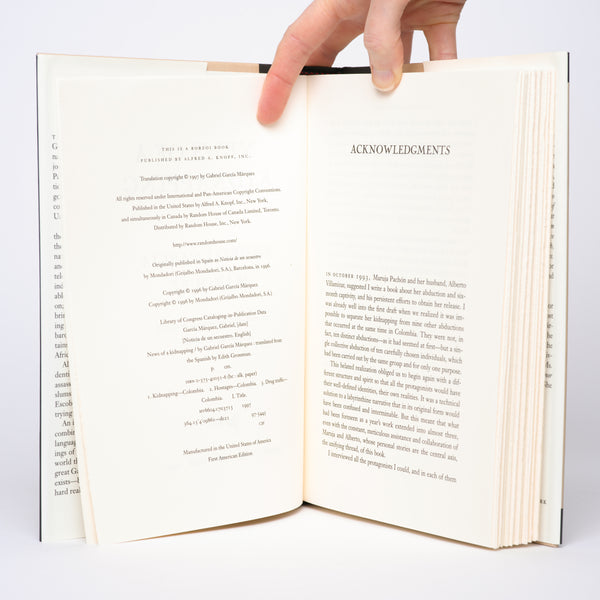 First American Edition. Very light wear to edges of jacket. Very light rubbing/bumping to corners of boards. Interior clean and unmarked. Marquez recounts the Medellín Cartel's kidnapping of a number of figures associated with Colombian politics and journalism.