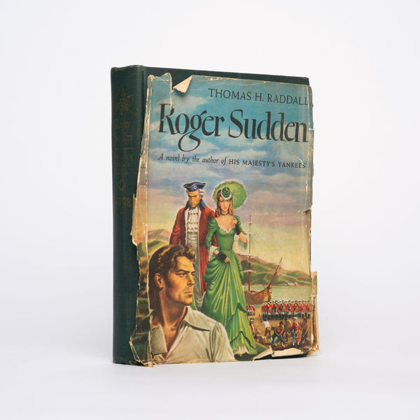 Signed by Thomas Raddall on half-title page. Interior otherwise clean and unmarked. Dark cloth boards. Gilt lettering to spine, somewhat faded. Light rubbing/bumping to edges of boards. Only front half of jacket, split at spine, present. Remains tattered and chipped. Copyrights are 1944, 1945.